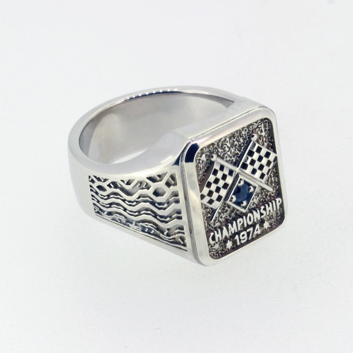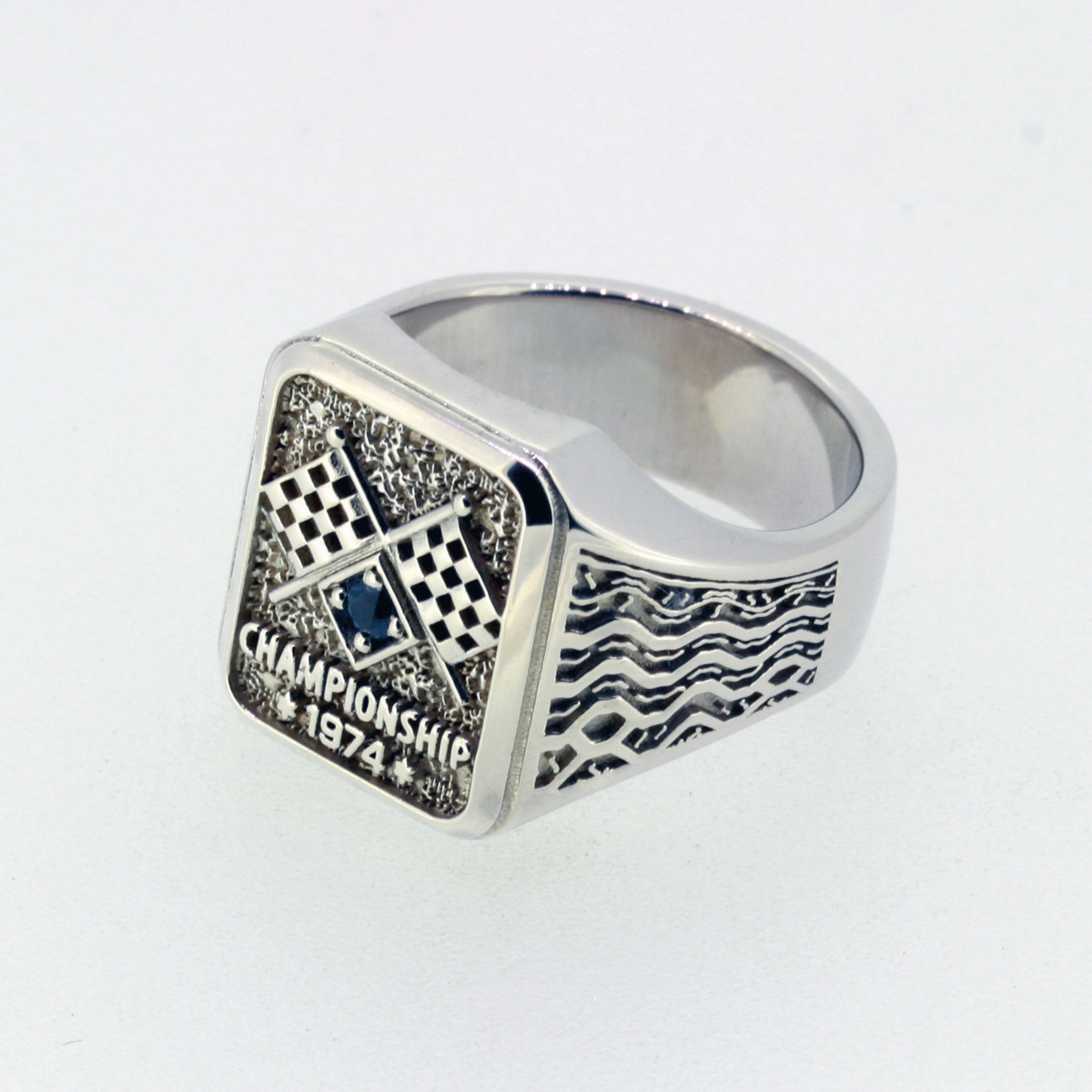 The 1974 Championship Ring by Racing Relics is a tribute to the golden age of motorsport, where design and performance came together in pure mechanical craftsmanship. Inspired by classic baseball-style championship rings, this piece reflects racing excellence and timeless form.
