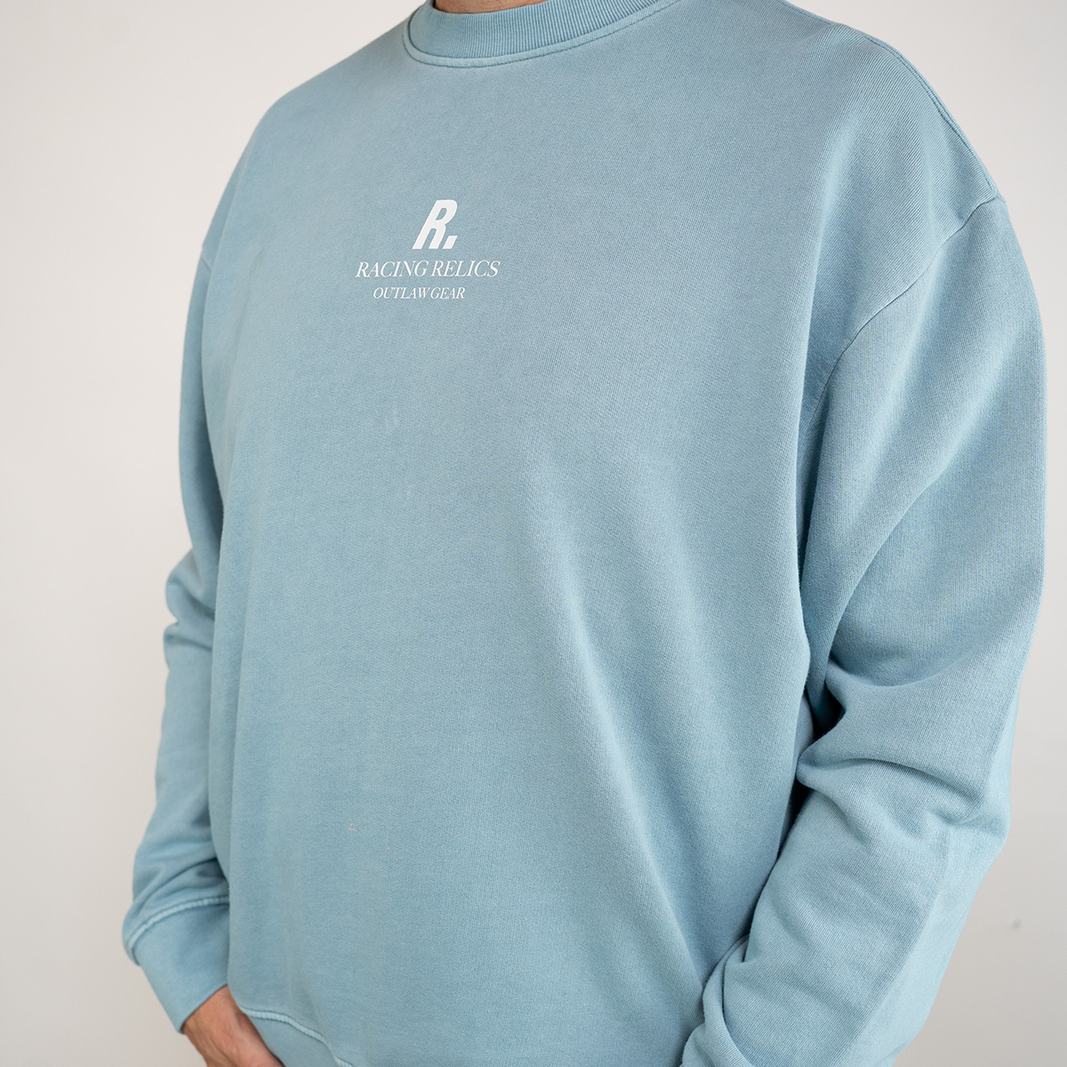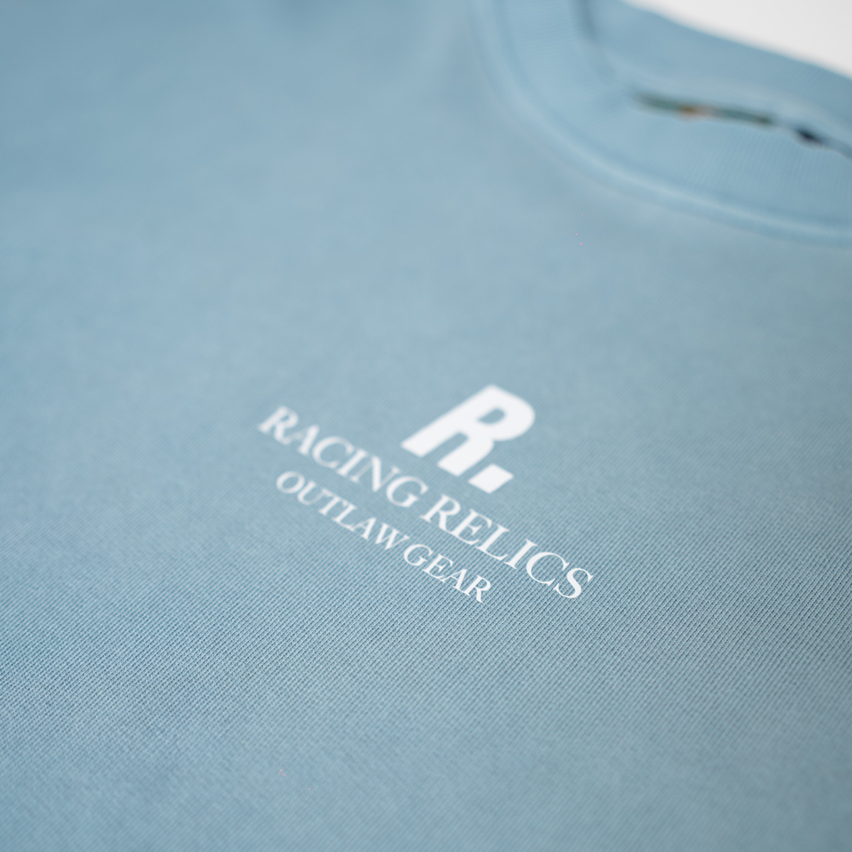 Crafted from 100% combed and ring-spun organic cotton, this crewneck has a substantial 350 GSM weight and a soft, premium hand feel. Each garment is finished with a washed-down vintage effect, giving it a unique character and lived-in appearance — like a relic from the pit lane of Le Mans.
