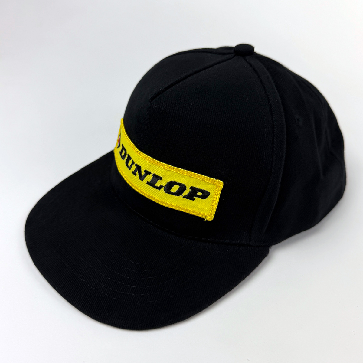 A true Racing Relics collector’s cap featuring an original Dunlop embroidered patch from the late 1970s. The bold yellow and black combination mirrors the brand’s iconic trackside signage seen at Le Mans, Silverstone, and countless touring car events.