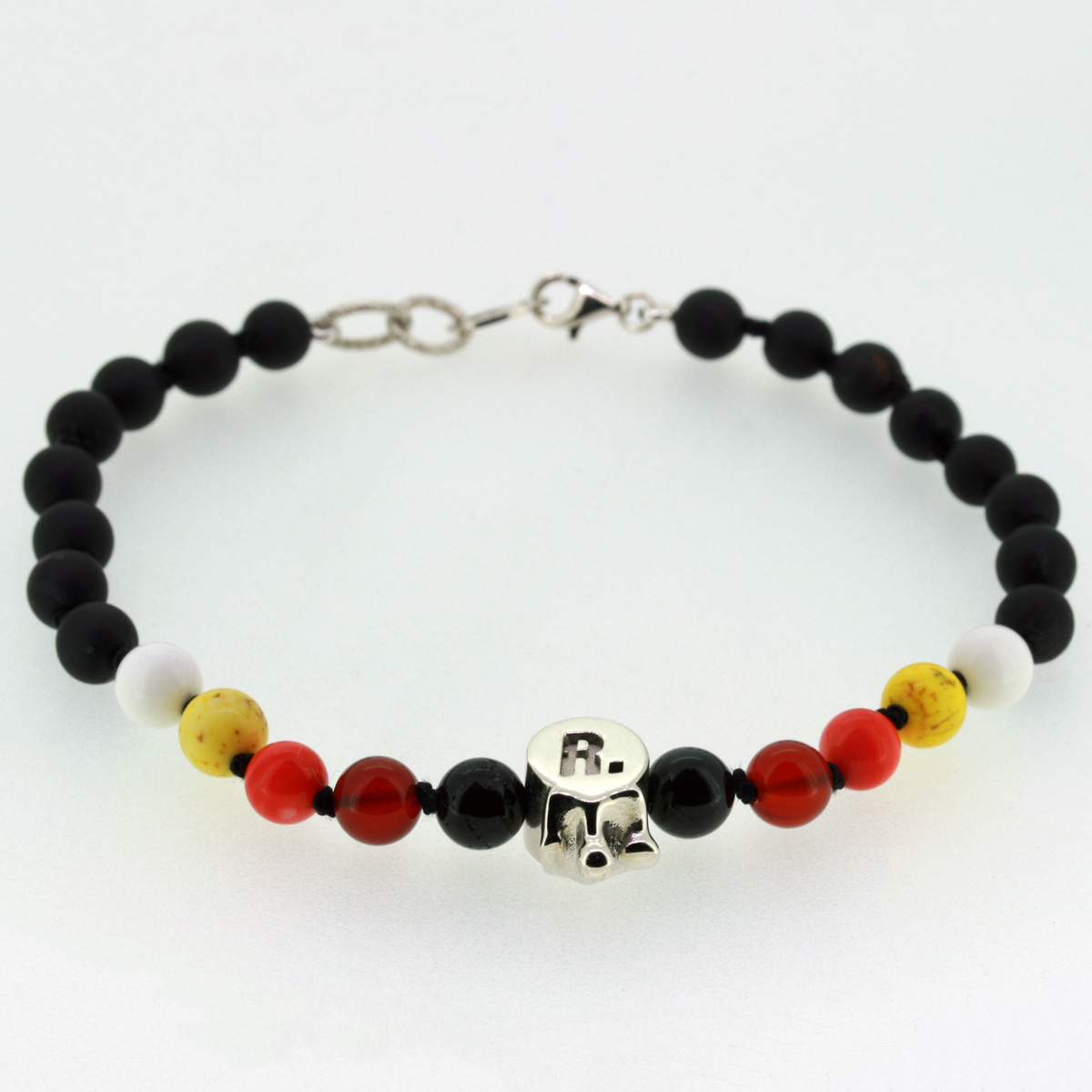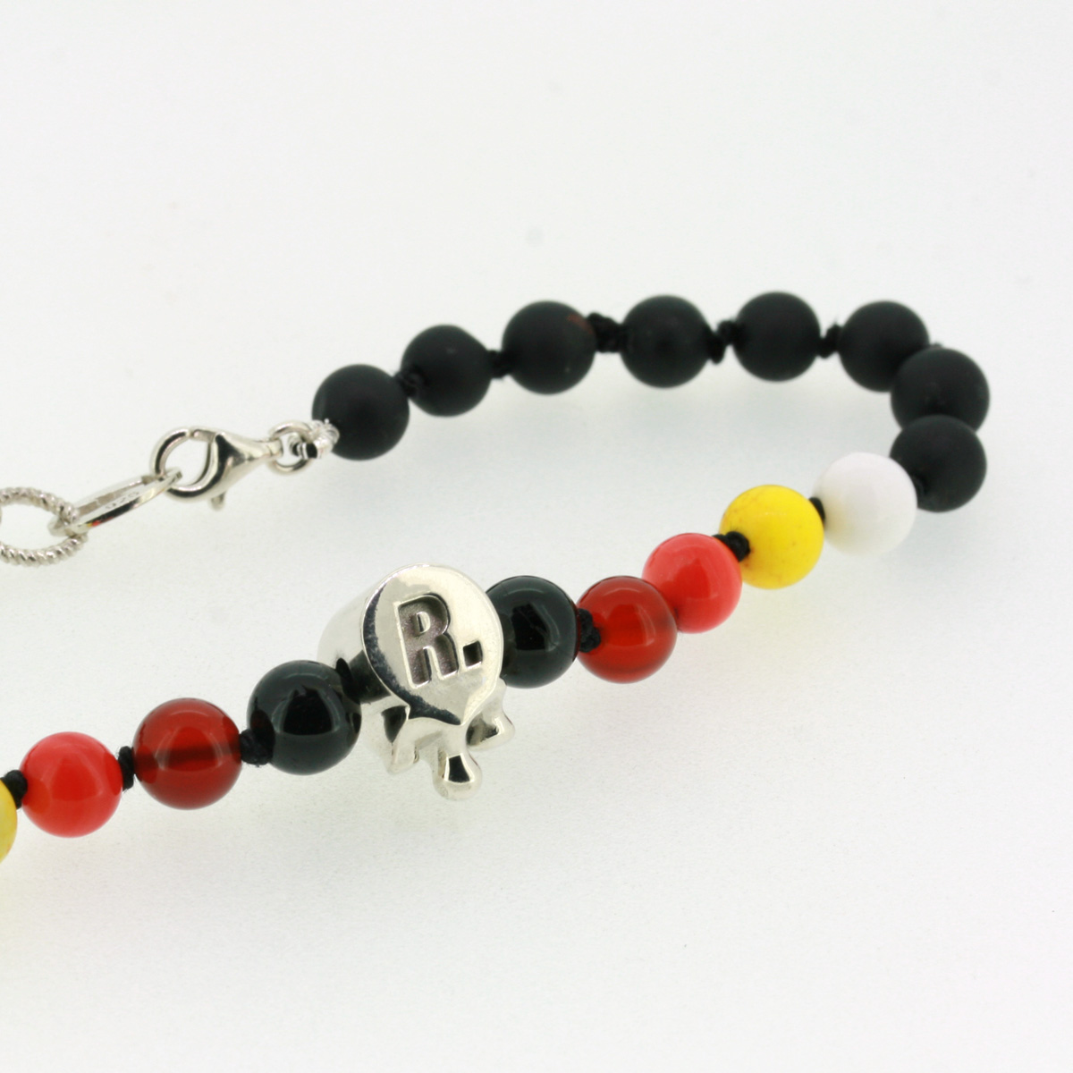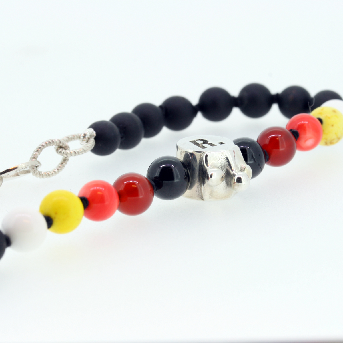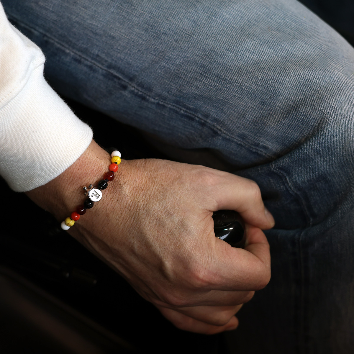 The Grand Prix Heritage Bracelet combines black Tourmaline, white Agate, yellow and orange Howlite, and red Carnelian, a vibrant tribute to the racing legacy of Germany’s Grand Prix era.